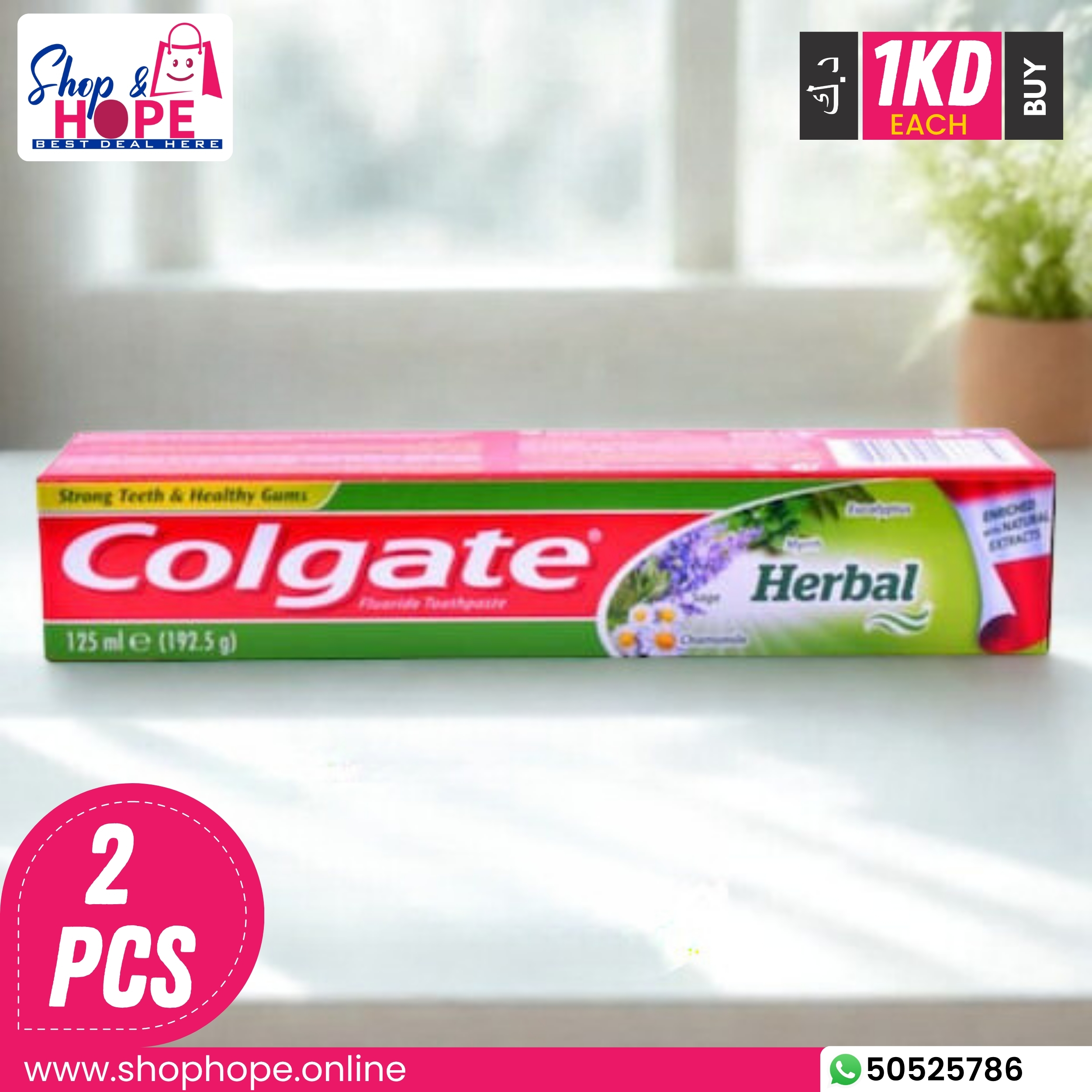 Colgate Herbal Toothpaste blends trusted Colgate cavity protection with natural herbal extracts like sage, chamomile, and eucalyptus for strong teeth and healthy gums. Its fluoride formula helps fight plaque, prevent cavities, and freshens breath naturally. The herbal combination supports oral hygiene and gives a refreshing, clean feeling every time you brush. Suitable for day and night use for all family members. Each pack contains 2 pcs of 125ml.
