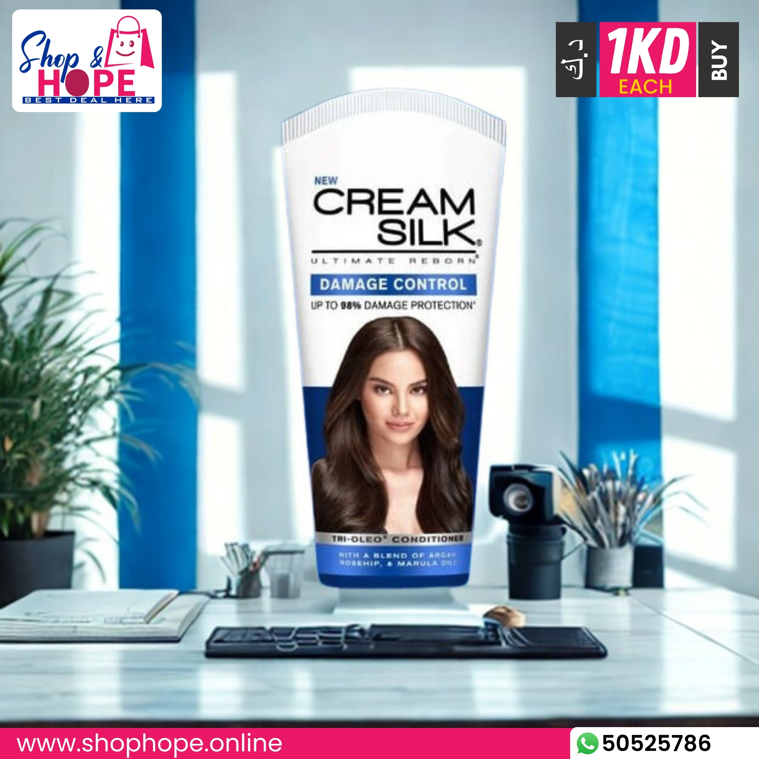 Cream Silk Ultimate Reborn Damage Control Conditioner is powered by Tri-Oleo Complex with Argan, Rosehip, and Marula oils to deeply nourish and restore hair, and Fibre Repair Complex for up to 98% damage protection. This advanced conditioner repairs breakage, split ends, and dryness from daily styling, heat, or environmental stress. Get salon-smooth, shinier, and more resilient hair from the first wash. Dermatologically tested and suitable for all hair types—delivers softer, manageable hair with every use. Primary keywords: Cream Silk Damage Control, Tri-Oleo Conditioner, Fibre Repair. Secondary: damage protection, repair breakage, split ends, argan oil, rosehip, marula