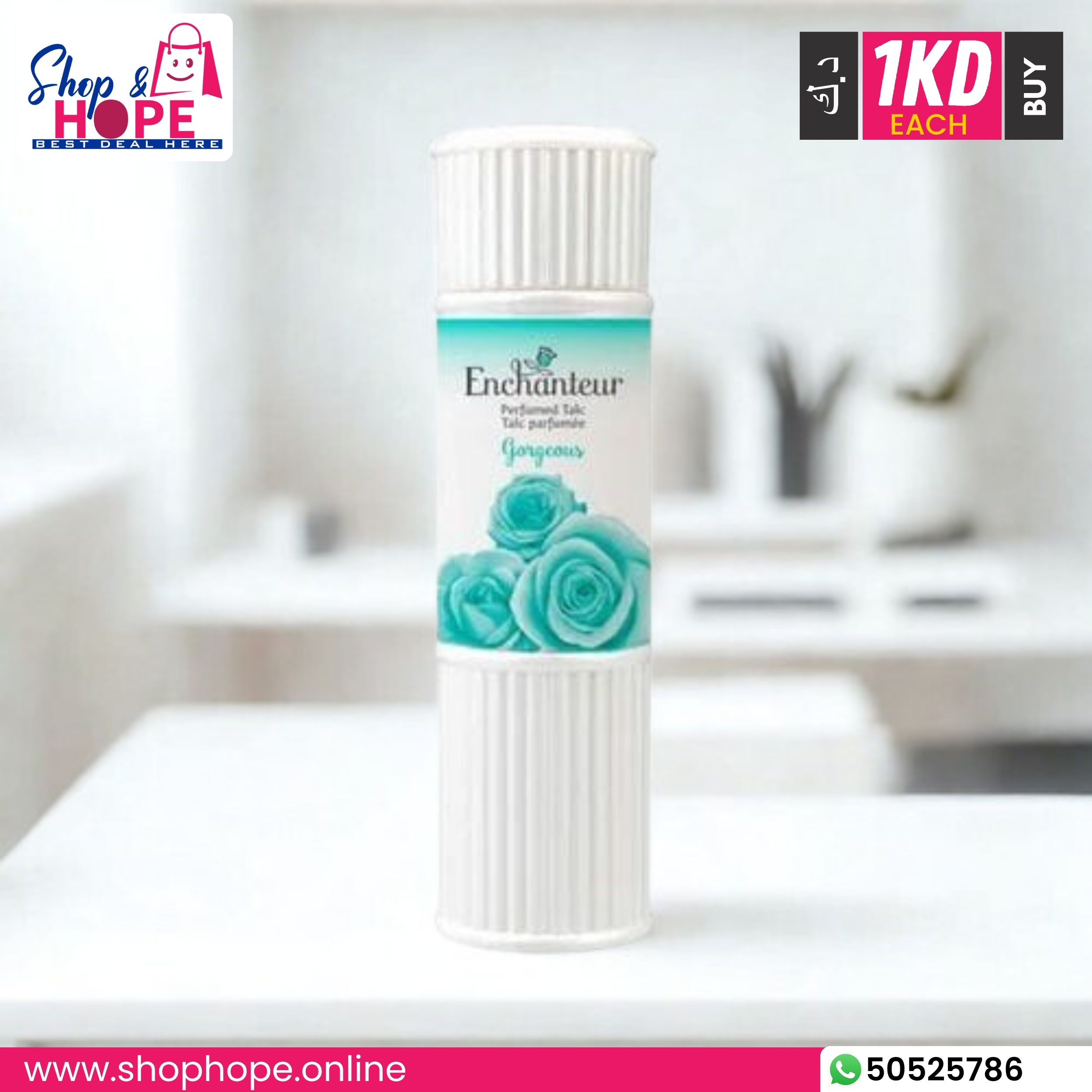 | Enchanteur Gorgeous Perfumed Talc features a mesmerising French floral fragrance blend of peaches, tuberose, jasmine, Bulgarian rose, and hints of amber and vanilla. Crafted for an uplifting, sensual, and long-lasting scent, the superfine talc easily blends onto skin and instantly leaves it feeling soft, dry, and fresh. Its silky, smooth texture absorbs moisture, reduces sweat and stickiness, and minimises discomfort, making your skin feel irresistibly fresh and feminine all day. Ideal for daily use on the face and body. Primary keywords: Enchanteur Gorgeous Talc, perfumed talcum powder, floral fragrance. Secondary: long-lasting, soft skin, absorbs moisture, French scent. |