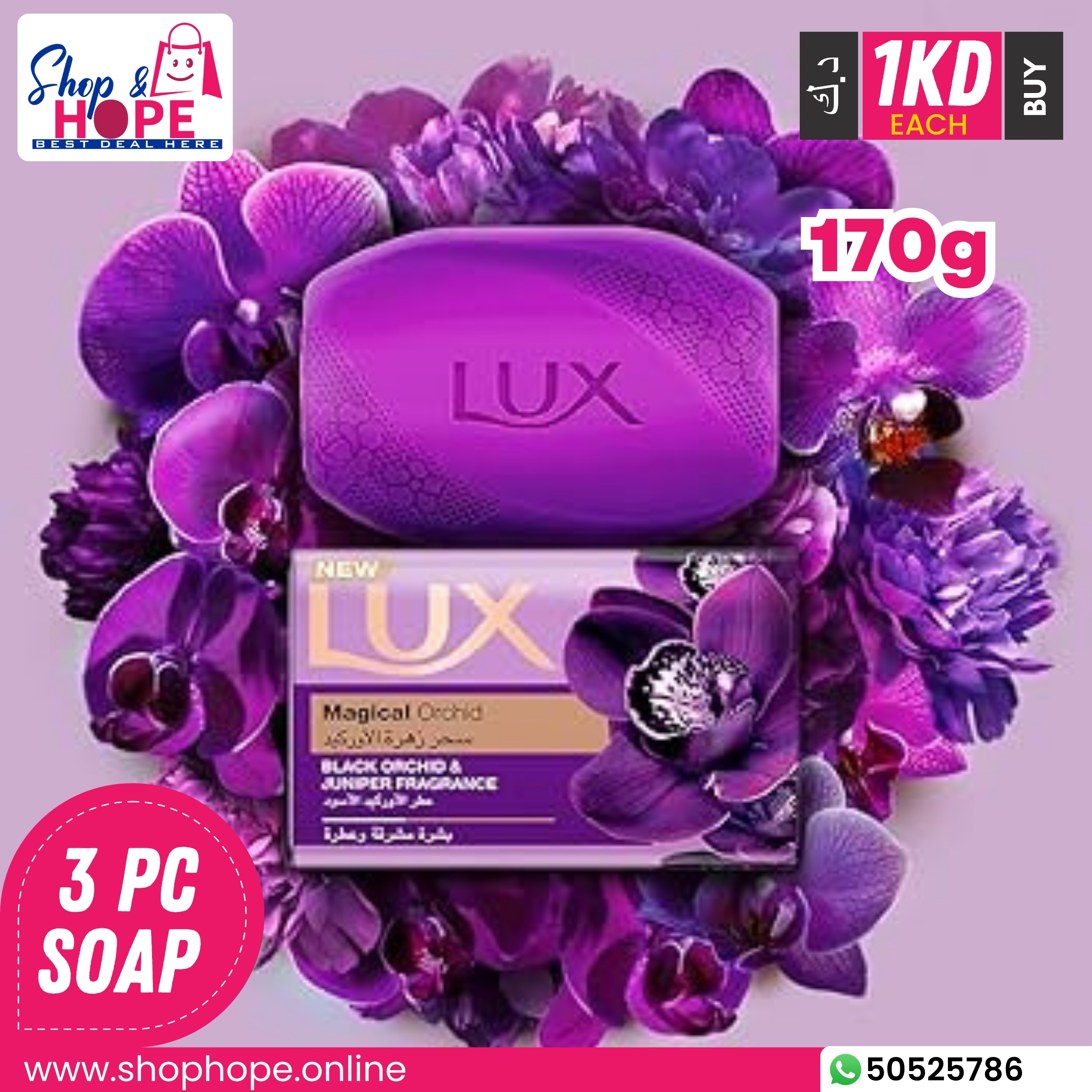 Lux Magical Orchid Soap with Black Orchid & Juniper Fragrance, 3 pack (170g each) for fragrant, soft and radiant skin