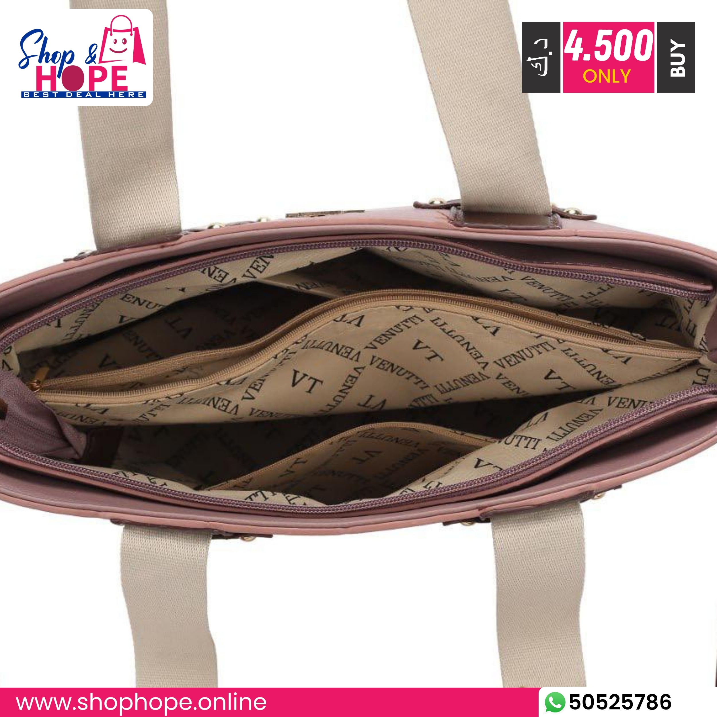 Premium vegan leather tote with Venutti branding, detachable sling, and spacious zippered interior. Durable, stylish, and perfect for daily or office use